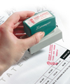 Az Xstamper bélyegzőket nem szükséges erősen lenyomni. Egy könnyed nyomás a bélyegezendő felületre már biztosítja a legtökéletesebb lenyomatot. Hagyjon néhány másodpercet a bélyegzések között, hogy a festék újra szétterüljön a bélyegzőgumiban.